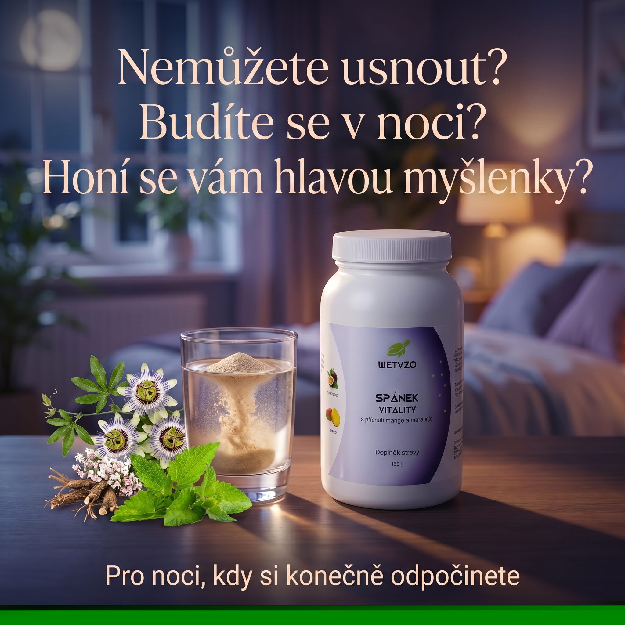 Spánek Vitality navíc obsahuje extrakty meduňky lékařské, kozlíku lékařského, chmele otáčivého, a mučenky pletní.